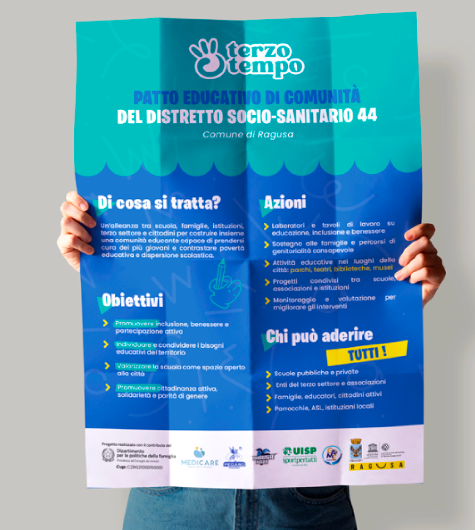 Terzo Tempo è molto più di un’associazione, è una comunità dedicata a trasformare l’educazione dei minori e a creare un futuro migliore per la città di Ragusa. Il progetto si basa su un’approfondita comprensione delle sfide che affrontano i giovani e delle opportunità che possono trasformare le loro vite, impegnandosi nell’organizzazione e nell’implementazione di iniziative volte a promuovere lo sviluppo e il benessere dei giovani e delle loro famiglie attraverso laboratori creativi, eventi sportivi, esperienze culturali ed educative.