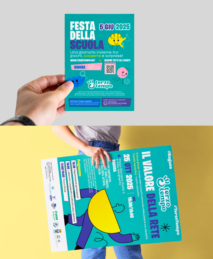 Per sostenere le attività della rete sono stati realizzati diversi strumenti di comunicazione visiva, pensati per informare la comunità e valorizzare gli eventi sul territorio. Le locandine, i manifesti e i materiali divulgativi garantiscono una diffusione capillare delle iniziative, favorendo partecipazione, inclusione e riconoscibilità del progetto.